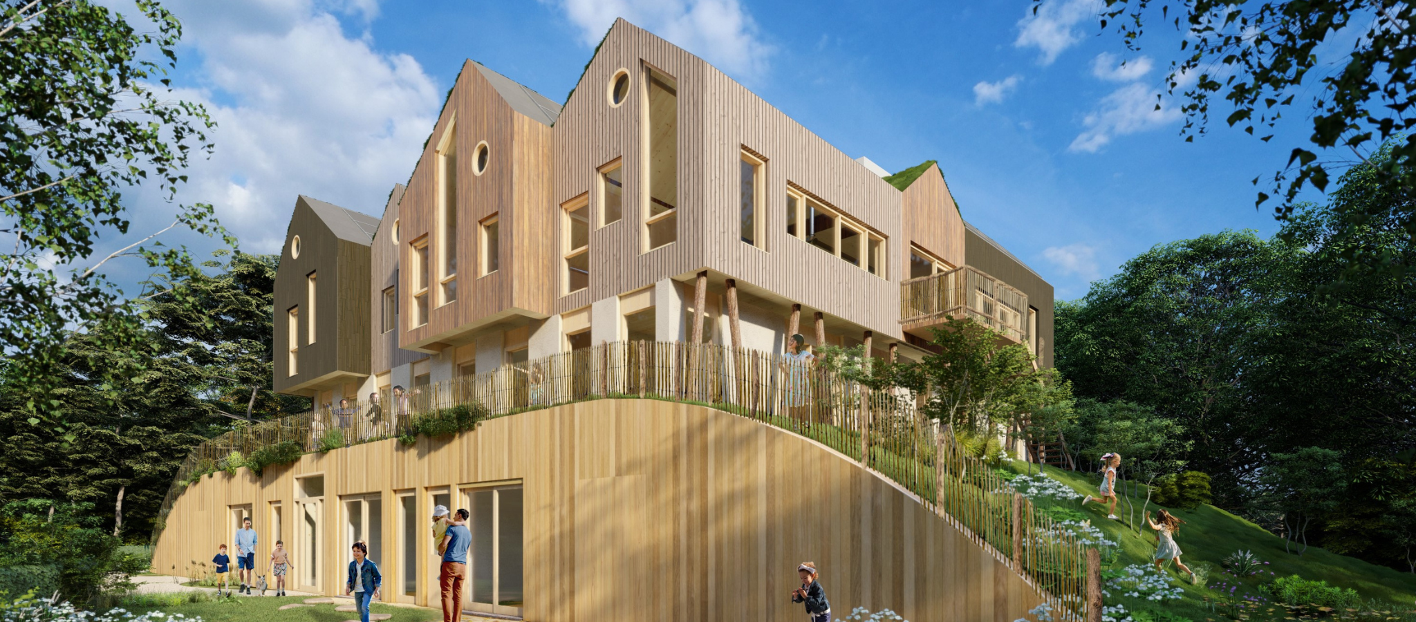 Het nieuwe pand van Kinderopvang Mowgli, dat ook op het landgoed ligt, is allesbehalve standaard. Met het gebruik van hout als belangrijkste bouwmateriaal en biobased materialen zoals houtvezelisolatie, vlas (gewas) en CLT (kruislaaghout) verkleint dit gebouw de ecologische voetafdruk. “We wilden een gebouw dat zo min mogelijk belastend is voor het milieu,” vertelt directeur Roel Vugts. Het nieuwe pand doet denken aan boomhutten in een berglandschap, precies in de lijn met de avontuurlijke visie van het kinderdagverblijf.